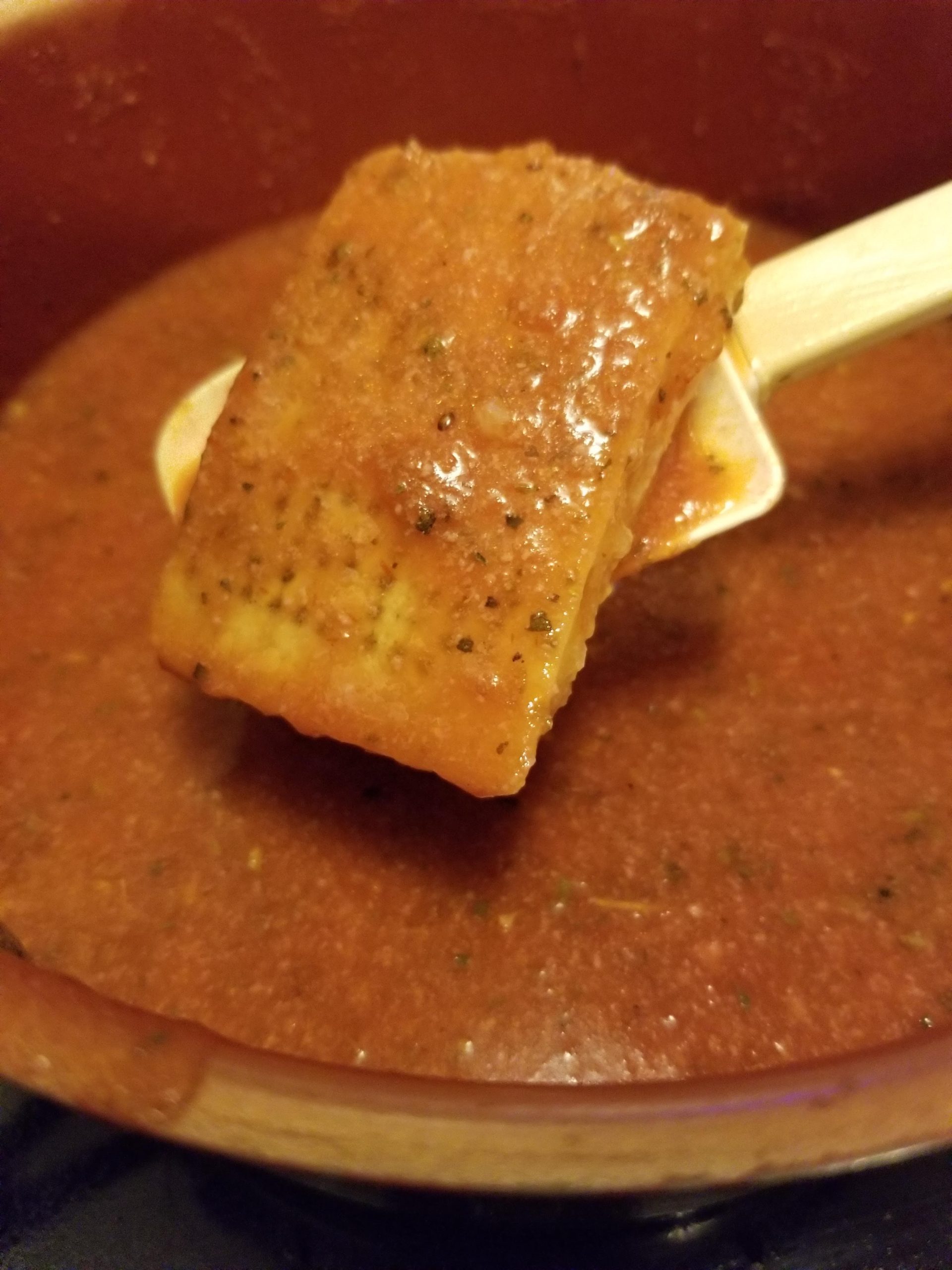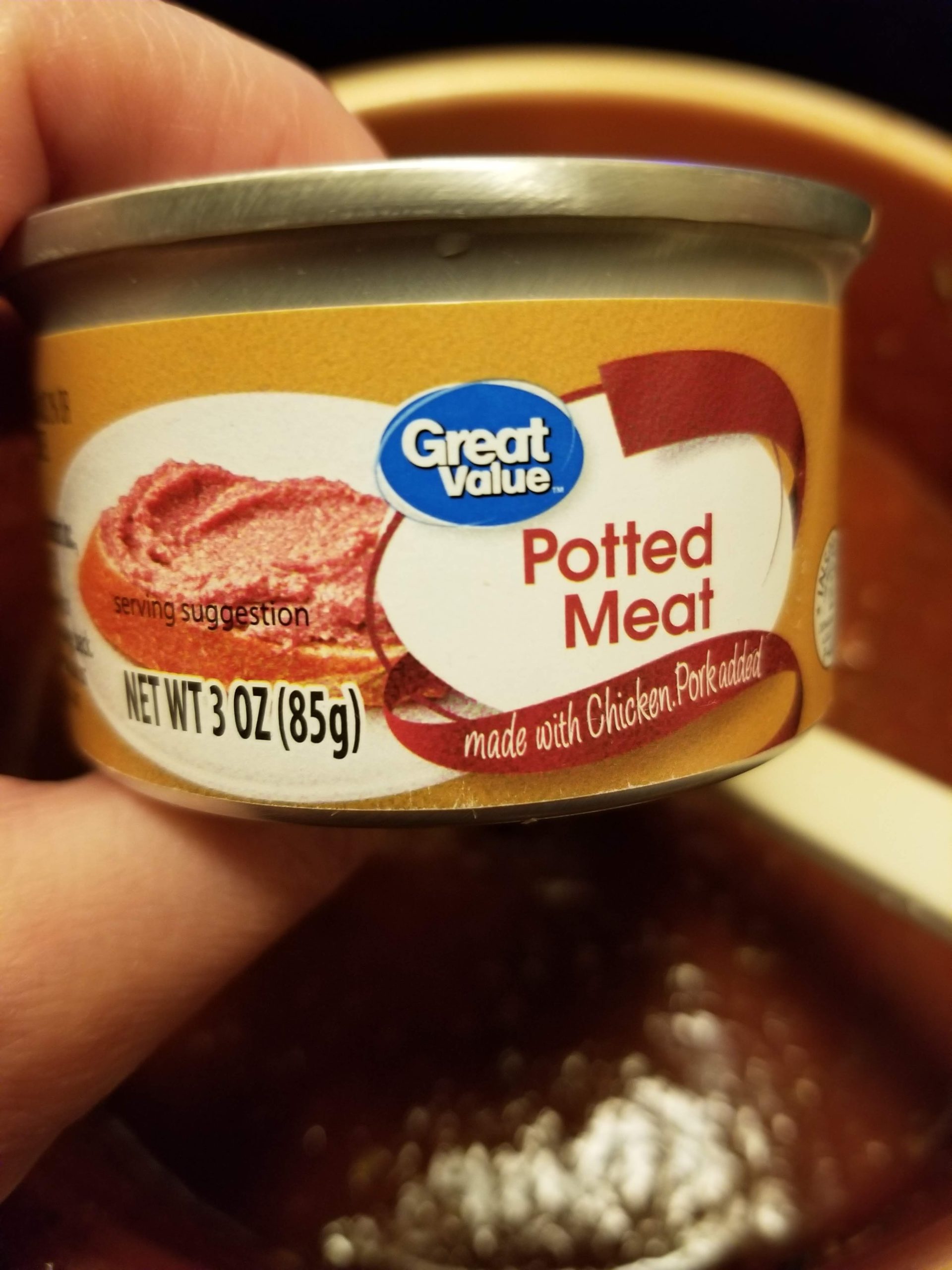 So in early February the local Walmart was selling cans of “potted meat” for 40 cents each. I had been watching this virus spreading very closely, so I figured what the heck – if I get desperate for food we’re likely to eat just about anything! Curiosity doesn’t kill this cat, so I opened the can to find a meaty sauce-like product. This would go perfect in a red meat sauce! So, that’s what I did here.